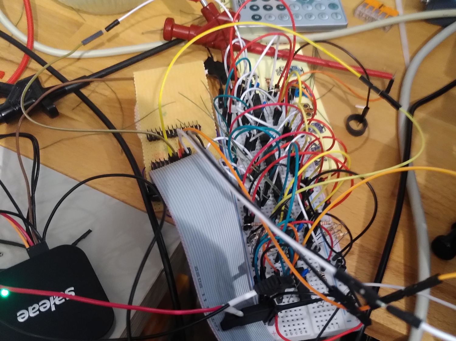 Before embarking on such a path, one should understand how the machine works. At least, that was the plan, until a breadboard with 74HC165 and 74HC166 chips, along with a big mess of color-coded wires, was used for the first test prototype of the newly organized SPI bus.